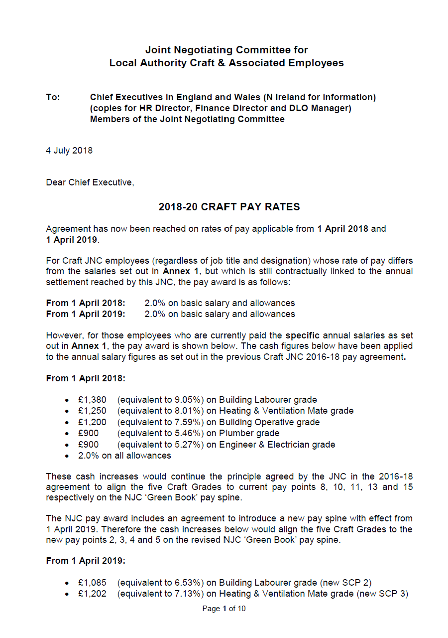 This offer applies only to those craft workers whose pay is determined by the above agreement, and does not apply to members whose pay is determined by NJC ‘Green Book’ arrangements.